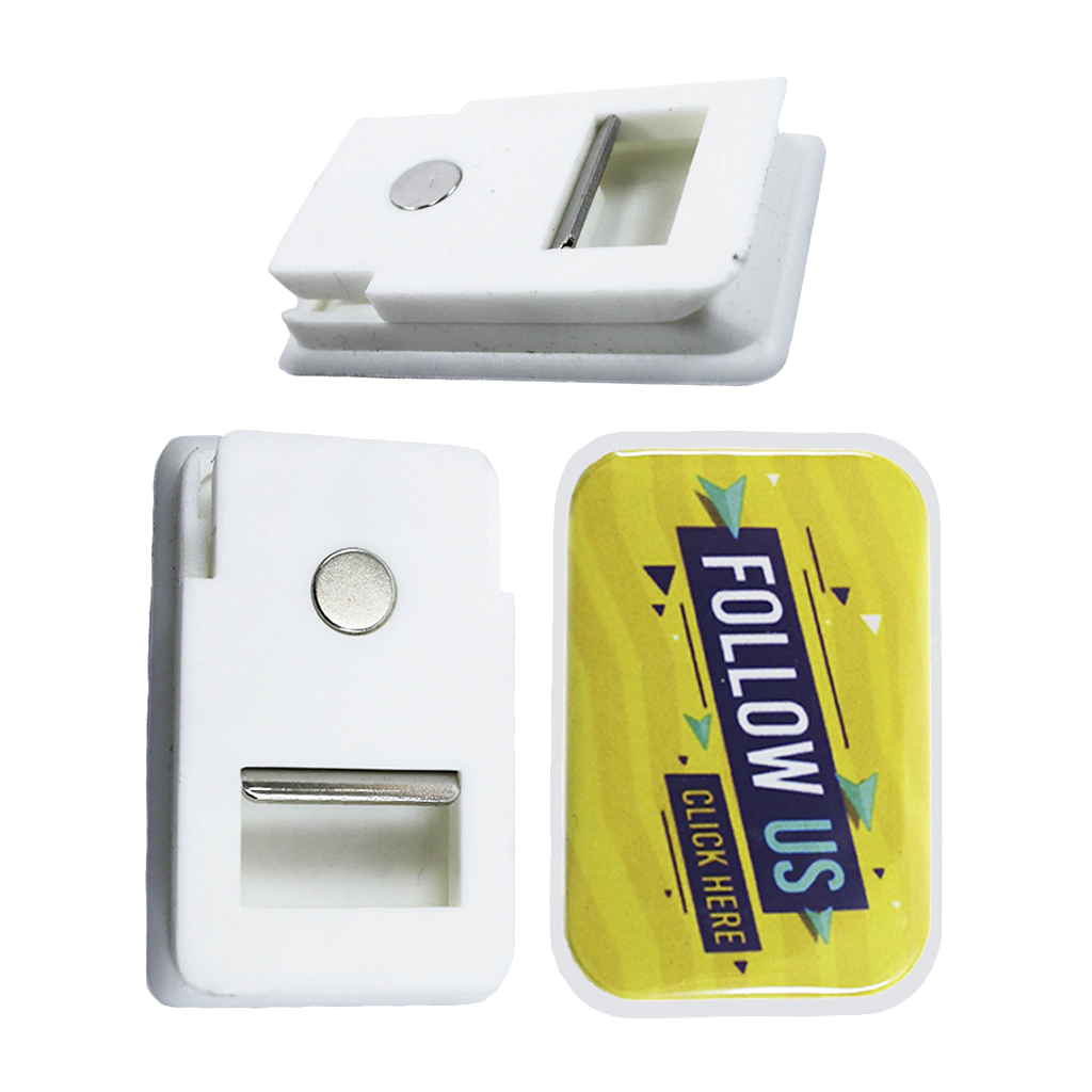 Destapador Plastico con Iman y pinza para colocar Documentos forma Rectangulo